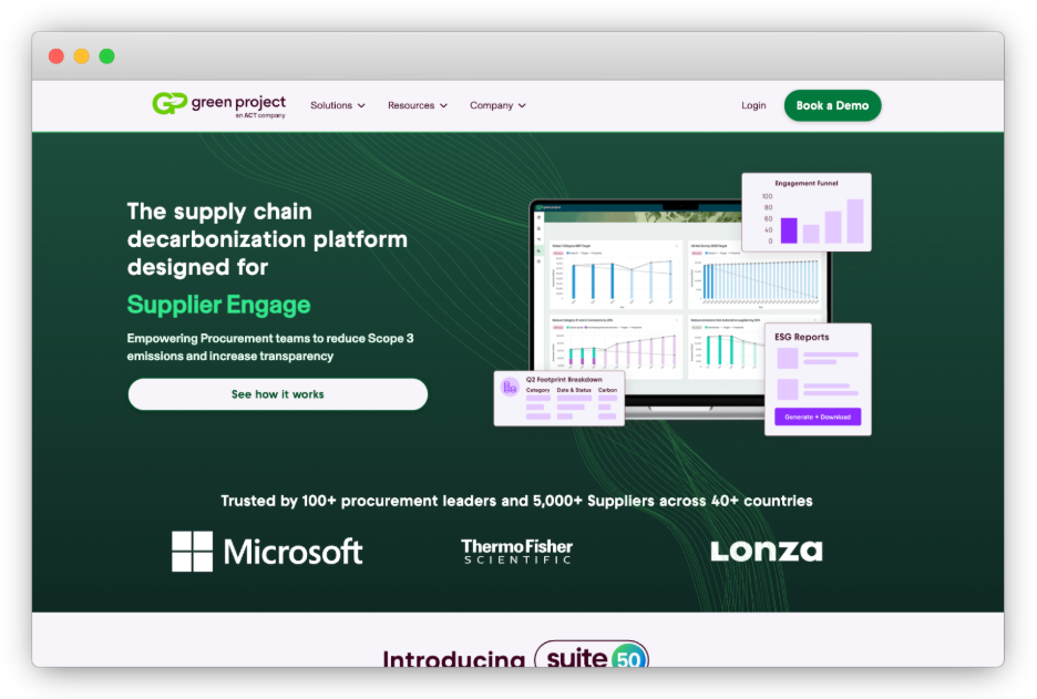 Green Project Technologies positions itself as a carbon accounting software and supply-chain decarbonization platform built for procurement-led Scope 3 programs. It supports Scope 1-3 accounting and places particular emphasis on supplier data access, verification workflows, and actionable procurement levers.