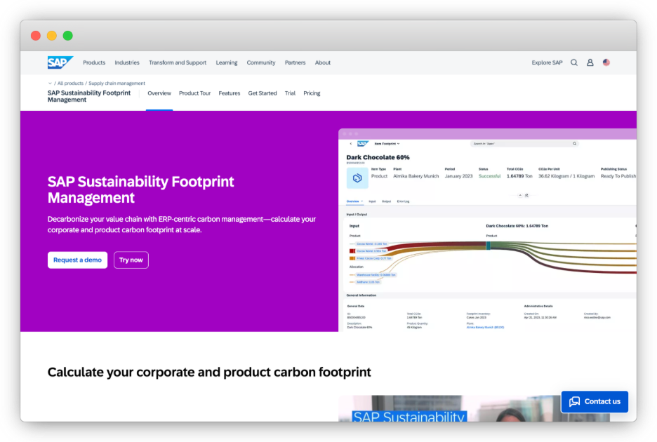 Best For: SAP-centric organizations seeking to calculate corporate and product footprints using operational and transactional data, with strong links into supply-chain processes.